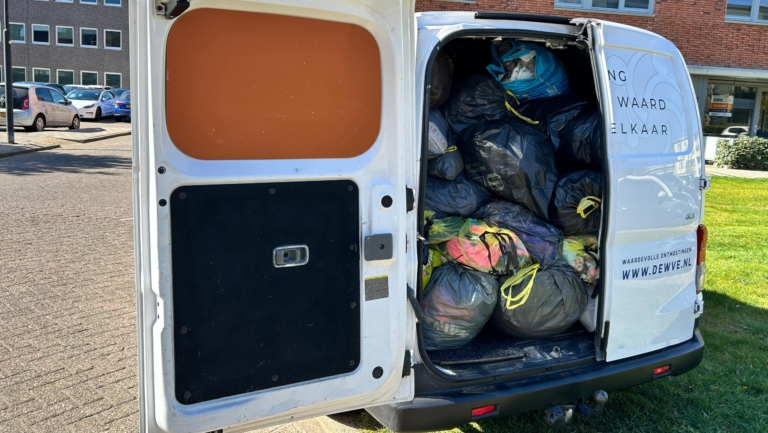 Een mooie vangst voor Stichting Dijk en Waard voor Elkaar. De stichting verzamelde zondag bij een kledingbeurs in Heer Hugo met succes spullen die niet waren verkocht. "Ons busje was goed gevuld!", laat manager Sylvia de Wilde tevreden weten. "Ik had niet verwacht dat ie zo vol zou komen."
