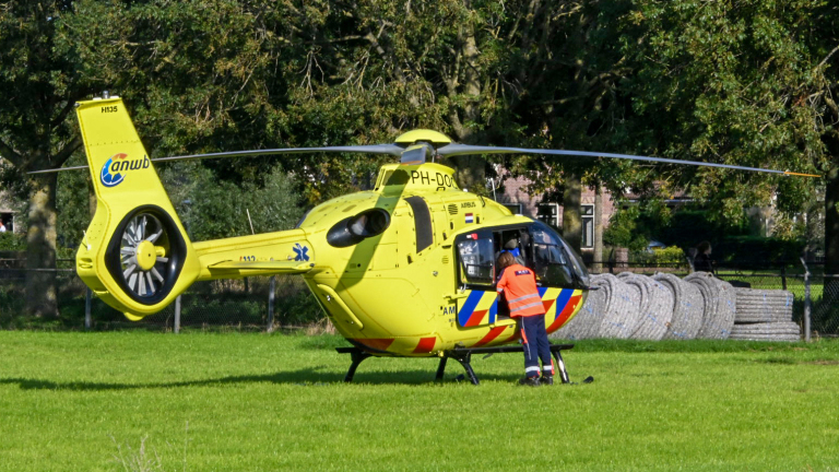 De traumahelikopter landde dinsdagmiddag in Obdam. Daar was een fietser ongelukkig ten val gekomen in een tunneltje onder de Braken (N194).