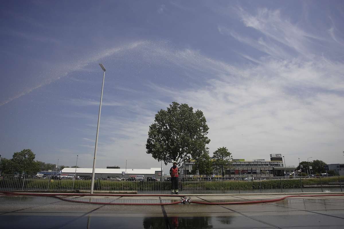 Alkmaar, 16 juni 2012. Vandaag vond in Arnhem in het bijzijn van een paar honderd nabestaanden van omgekomen brandweermensen en minister Opstelten de eerste herdenking bij het Nationaal Brandweermonument plaats. He Nationaal Brandweermonument is een aanvulling op de lokale herdenkingsplaatsen en eren brandweermensen die na 5 mei 1945 tijdens het uitoefenen van hun werk zijn omgekomen. Het bestuur van de stichting Nationaal Brandweermonument heeft alle brandweerkorpsen in Nederland gevraagd om op zaterdag 16 juni om exact 14.30 uur het ereteken te maken voor de omgekomen brandweercollega’s. Dat ereteken wordt gemaakt door de waterstralen uit twee spuiten elkaar op 10 meter hoogte te laten raken waardoor er een ereboog ontstaat. Brandweer Alkmaar heeft geen collega's uit Alkmaar te herdenken, maar heeft uit respect voor omgekomen brandweerlieden uit andere korpsen vandaag toch gehoor gegeven aan het verzoek. De foto's zijn gemaakt door Alkmaar Centraal fotograaf Marco Schilpp.