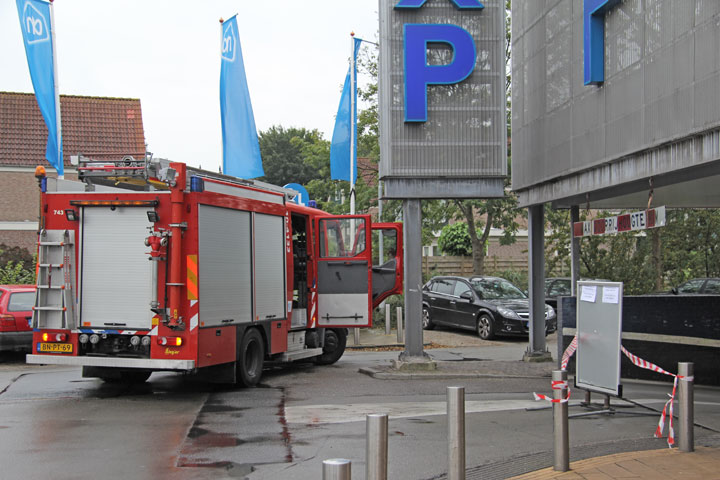 Alkmaar, 01 oktober 2012. Commotie in de parkeergarage van het winkelcentrum aan de Wendelaarstraat waar onder andere Albert Heijn, Blokker, Hema en Action gevestigd zijn. In de garage hing een enorme walm en stank. Omdat men vreesde dat de rook afkomstig was van een smeulende of brandende auto werd de brandweer ingeschakeld. Die kon eenmaal ter plaatse weinig anders doen dan de garage laten afsluiten en de mensen uit de garage weghouden. Nader onderzoek wees namelijk uit dat de boosdoener al vertrokken was, het ging waarschijnlijk om een bijzonder slecht afgestelde of defecte motor van een auto. Om de walm uit de garage te krijgen werden verschillende deuren tegelijk open gezet om ventilatie te creรซren. Na een aantal minuten konden het winkelend publiek weer bij de geparkeerde auto's.