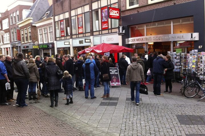 Alkmaar, 25 november 2013. Tot de overkant van de straat stonden ze zondag bij boekhandel Van der Meulen bij de signeersessie van Kristen Nygaard. Nygaard wordt ook wel de Johan Cruijff van boven het Noordzeekanaal genoemd. De oud-voetballer presenteerde zaterdag het door journalist Tim Dekker geschreven boek over zijn carrière bij AZ '67 in de jaren zeventig en tachtig in het AFAS stadion en was daarna bij het AZ Fancentrum om boeken te signeren. Zondag streek Kristen Nygaard in de boekhandel aan de Langestraat neer voor nog een signeersessie, en dat leverde veel belangstelling op.