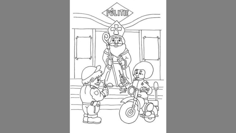De politie van Alkmaar-Duinstreek roept kinderen via Facebook op om hun politiebureaus te decoreren met kleurplaten. Per gedicht wordt gevraagd om de een kleurplaat in te kleuren en in te leveren bij het bureau in Alkmaar of Castricum. Het kan de afgebeelde tekening zijn, maar op vraaghetdepolitie.nl staan er nog veel meer, al hebben die niks met Sinterklaas te maken. Wie een kleurplaat inlevert krijgt een presentje.
