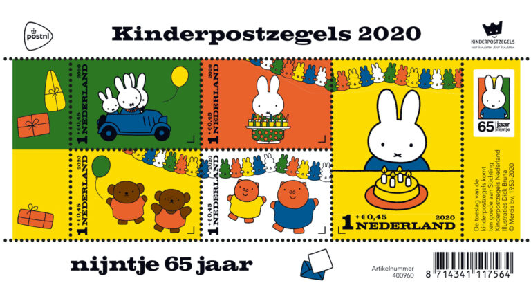 Sinds 1924 zet Kinderpostzegels zich in voor kwetsbare kinderen die om wat voor reden dan ook in onveilige situaties terecht zijn gekomen. Dit jaar is het thema ‘Geef een veilig thuis’. Met een jarige nijntje op de vrolijke kinderpostzegels wil de stichting een warm en prettig gevoel van veiligheid aan de kinderen geven.