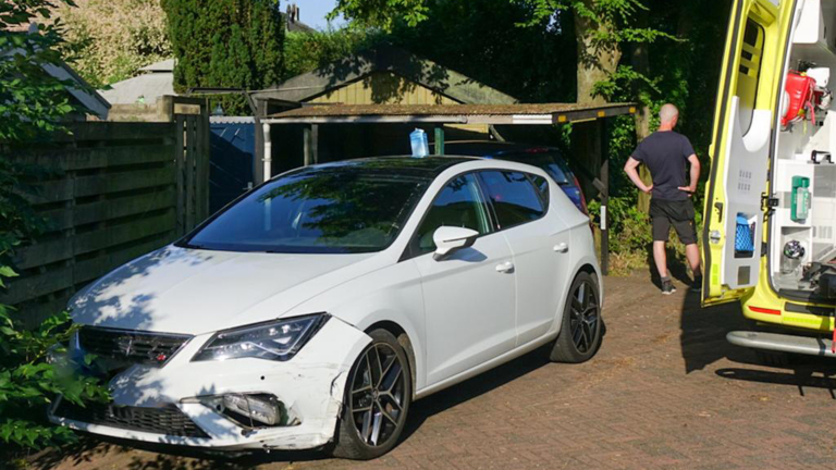 De scooterrijdster en de automobilist wilden elkaar passeren op de smalle weg en kwamen daarbij om onbekende reden in botsing. De vrouw kwam hard ten val en haar scooter schoof onder een geparkeerde auto. Naast dat de vrouw gewond raakte, liep haar scooter zware schade op. De auto had schade aan de rechter voorzijde en een lekke radiator.