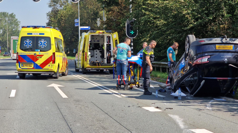 Op de ringweg van Alkmaar is een auto over de kop geslagen. Dat gebeurde donderdagmiddag op de kruising bij ijsbaan De Meent. Daar is ook de afslag naar Egmond. Bij het ongeluk vielen zeker twee gewonden. Er was veel schade en het verkeer ondervond veel hinder.