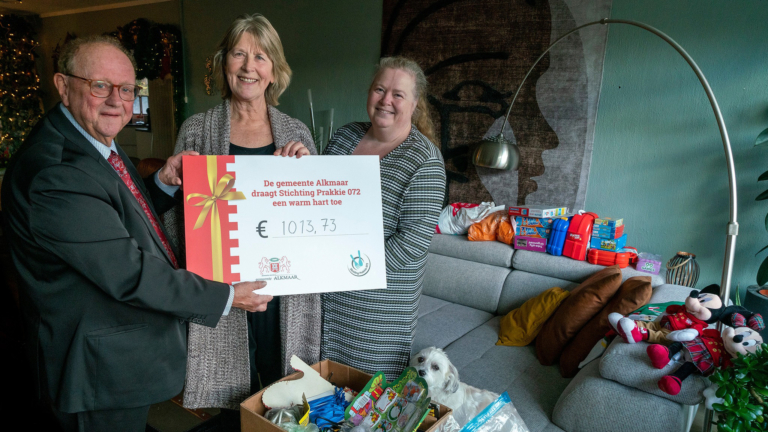 Gemeente Alkmaar heeft al het geld dat in gevonden voorwerpen is aangetroffen gedoneerd aan Stichting Prakkie 072. Het gaat om geld uit voorwerpen die nooit meer door eigenaren zijn opgehaald. Wethouder Arie Epskamp verraste Silvia Bos en Natasja Waij van de stichting deze week met een symbolische cheque van 1013,73 euro.