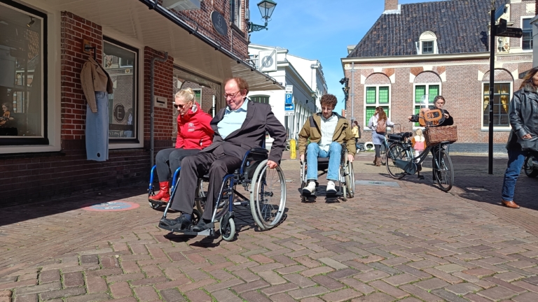 De straatstenen in de binnenstad van Alkmaar liggen schots en scheef. Daar hebben de meeste mensen misschien niet zoveel last van. Maar een 'simpele' hobbel in de weg kan voor iemand in een rolstoel een hele uitdaging zijn. "Over deze hobbel kom ik niet heen. Het is echt hartstikke zwaar", zegt wethouder Arie Epskamp terwijl zijn wangen rood worden. "Wij hebben geen idee waar iemand in een rolstoel tegen aan rolt. Dat moet je écht ervaren."