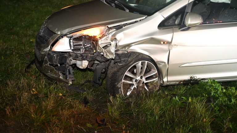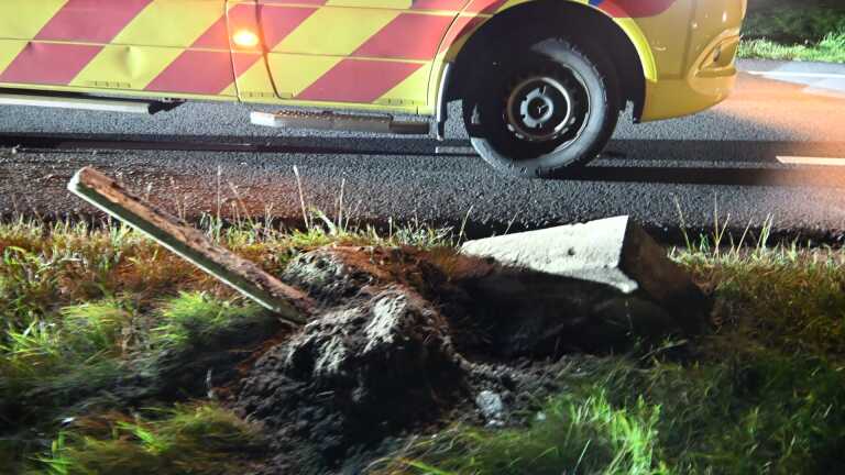Daar raakte de auto een steen, ramde een verkeersbord en kwam uiteindelijk op zijn kant in het gras tot stilstand. De bestuurder is ter plaatse gecontroleerd door ambulancepersoneel, maar hoefde niet mee naar het ziekenhuis.