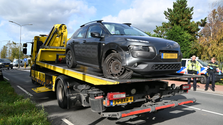 De auto raakte beschadigd en is later afgevoerd. De weg was tijdelijk deels afgesloten voor verkeer.